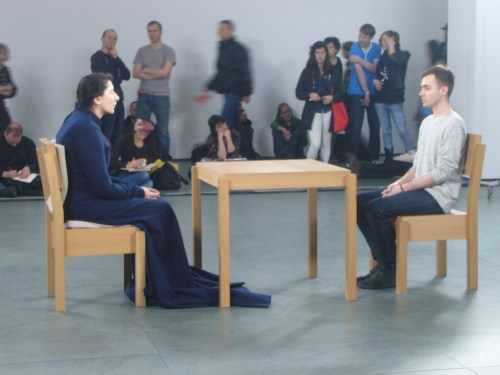 C’est probablement cela qui fait le caractère littéralement fascinant (deinos ???) de Marina Abramovic. Elle te fait faire l’expérience de toi-même. Elle te voit la regardant et elle te rend attentif à ton propre regard sur elle et sur toi-même.