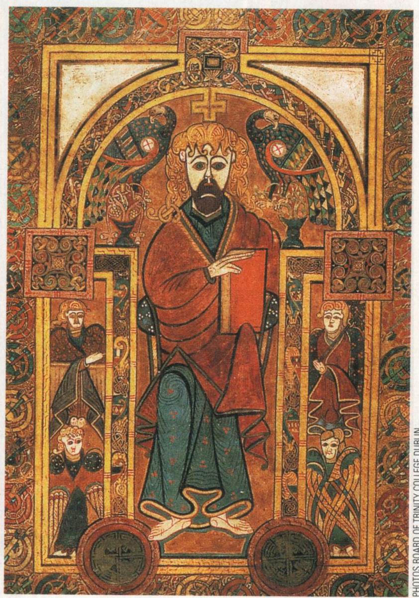 Christ a la barbe rousse et aux yeux verts (Livre de Kells)