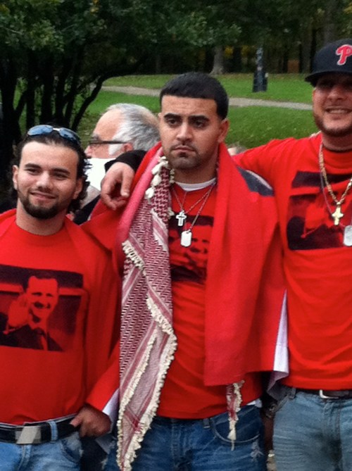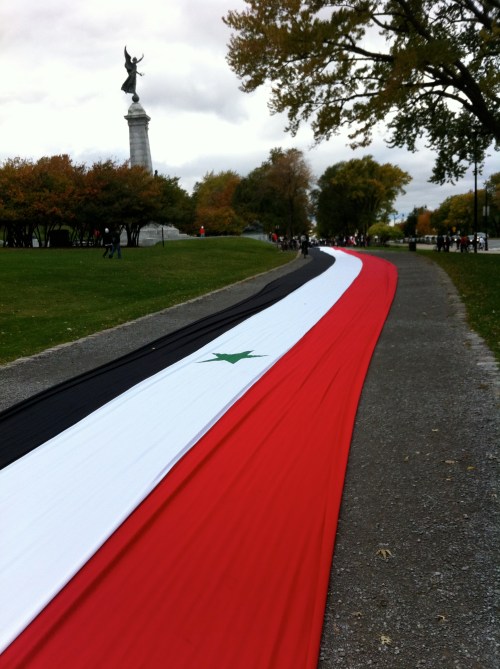 Manifestation de soutien au président de la Syrie Bachar al-Assad (chacun a droit à son opinion, même les salauds…). Un avis contraire m’a été signifié par un chauffeur de taxi d’origine syrienne, un homme très distingué parlant très bien français, qui espérait plutôt qu’al-Assad crève comme Kadhafi.