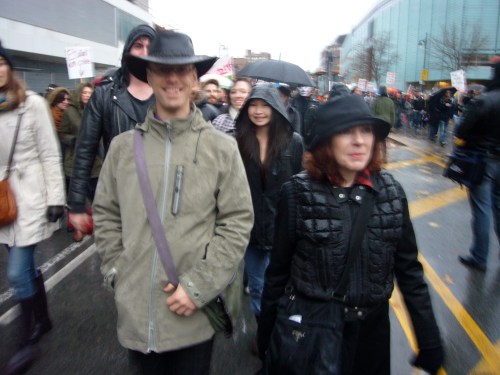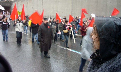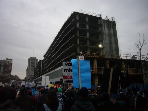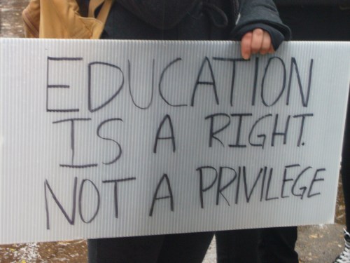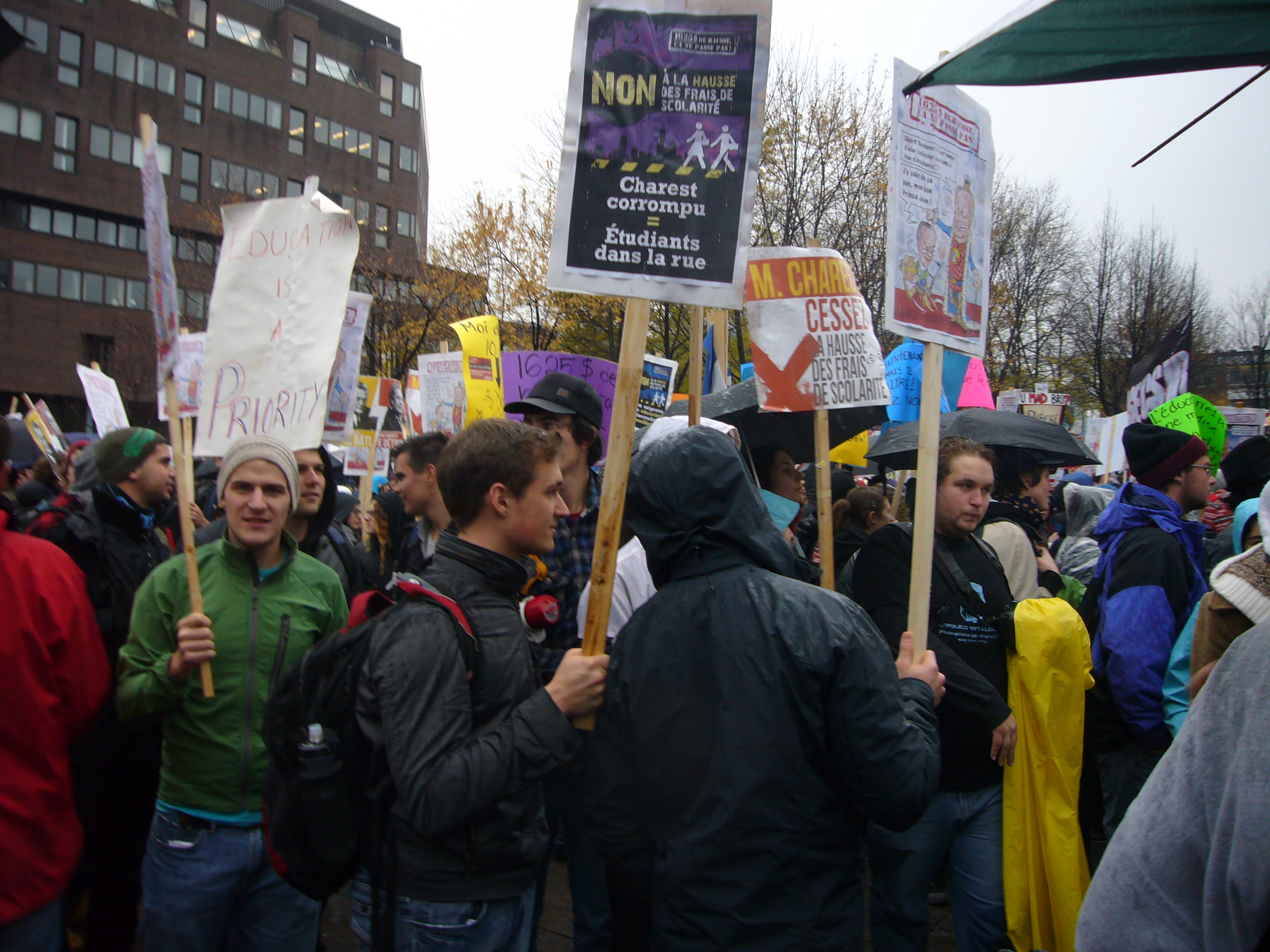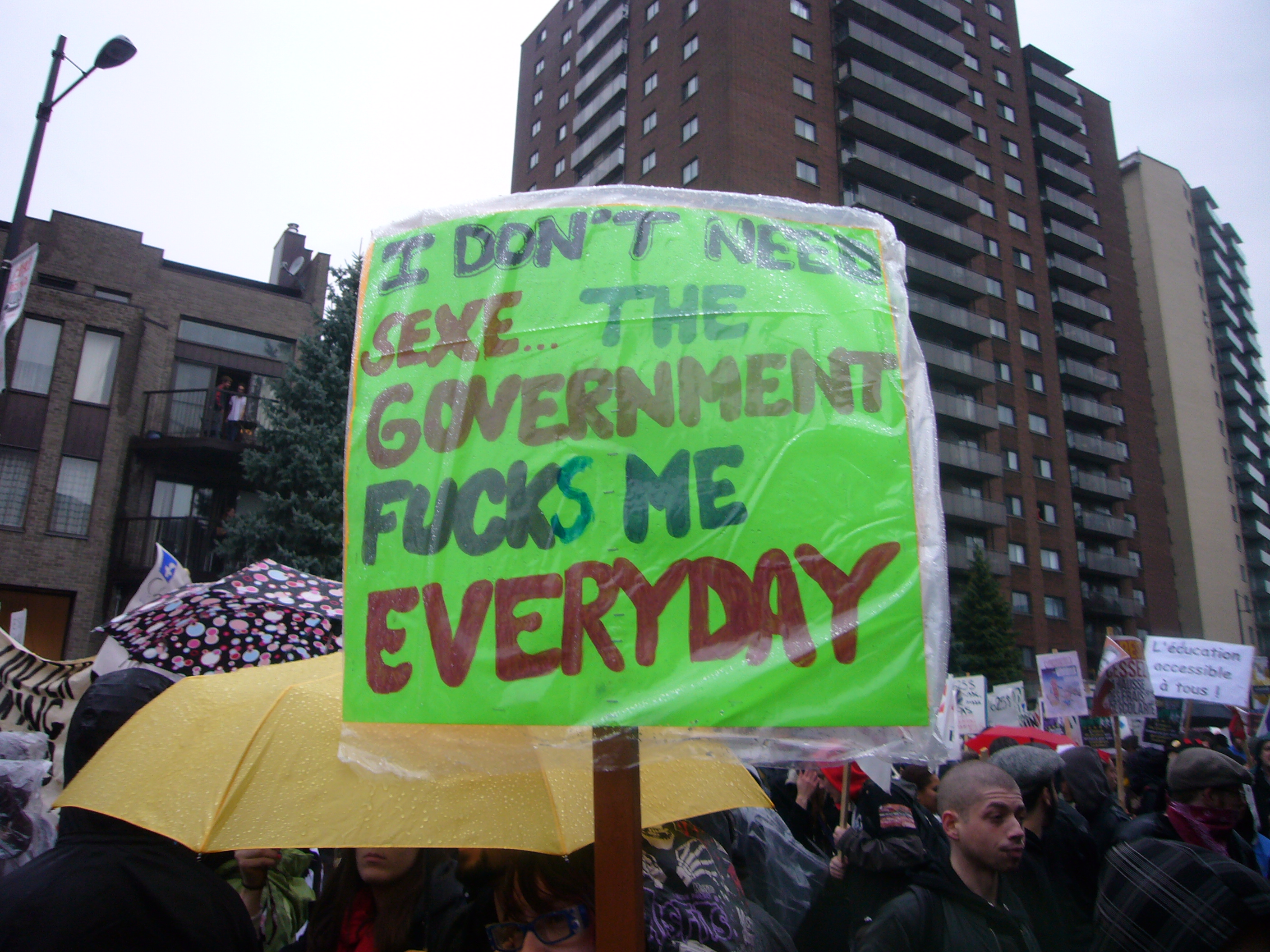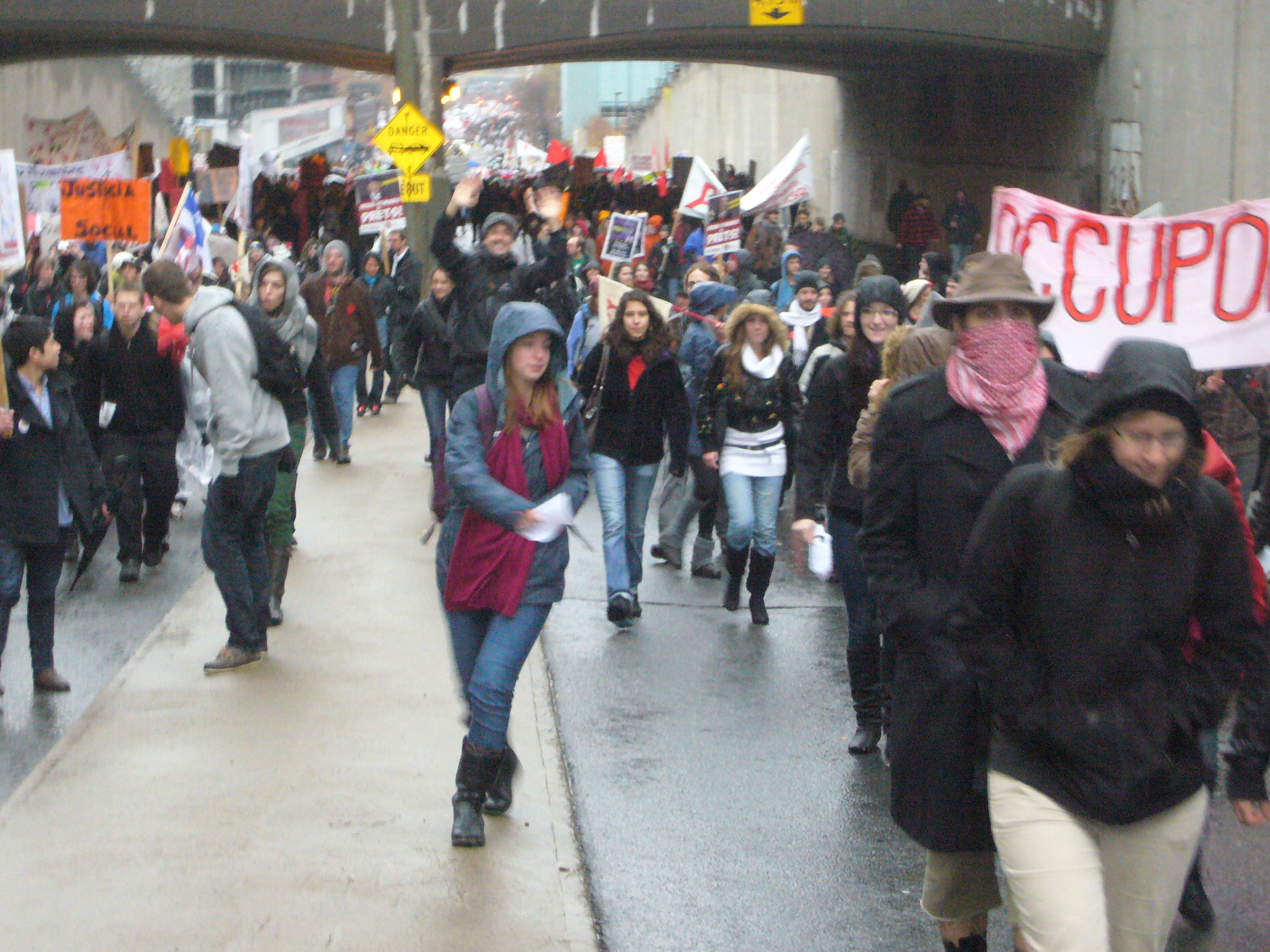 Dans un contexte d’indignation générale (on pense au mouvement «Occupy»), et dans le contexte de la lutte contre la hausse des frais de scolarité qui sévit depuis plus d’un an maintenant, dont nous sommes tous victimes, je ne peux que remarquer l’incroyable désolidarisation entre les hommes, tous sexes confondus. Certes, ce n’est pas face à une guerre qu’on se retrouve… peut être est-ce pire ? Ce n’est pas des fusils qu’on pose sur nos tempes, mais peut-être que les gros banquiers et l’État prônant l’élitisme devrait commencer, pour nous dégrouiller un peu ?