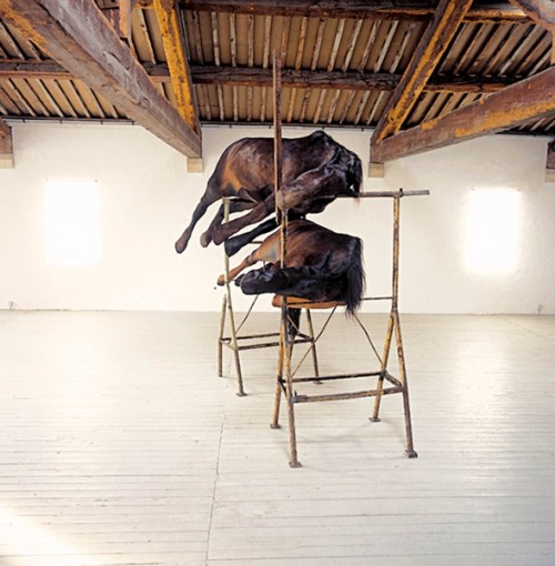 «DHC/ART a le plaisir de présenter deux expositions solo simultanées, l’une de la célèbre sculpteure belge Berlinde De Bruyckere, et l’autre, du peintre américain John Currin — deux artistes figuratifs internationaux de premier plan œuvrant dans la tradition virtuose des grands maîtres et qui explorent toujours les paramètres de leurs disciplines respectives tout en les élargissant.»