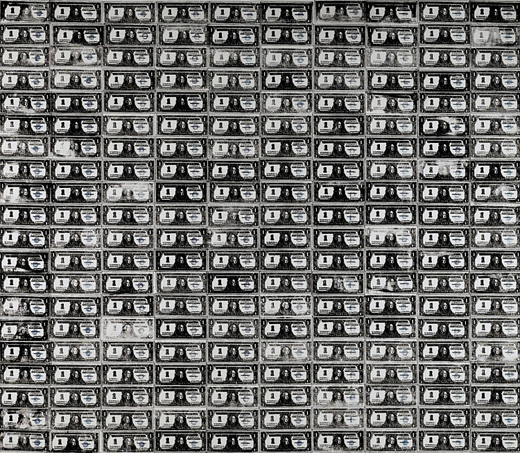 En 1962 Andy Warhol (1928-1987) a réalisé ce tableau intitulé «200 One Dollar Bills», il s’agit d’une grande sérigraphie sur toile (80,25 x 92,25 pouces).