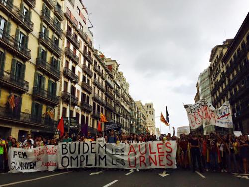 Toute la soirée d’hier, les hélicoptères de la Guardia nationale espagnole ont surveillé la ville, et nous avons peu fermé l’œil cette nuit, tout comme beaucoup de Catalan.es qui ont passé la nuit à occuper des écoles qui auraient pu faire l’objet de fermetures par la Guardia. Heureusement, cela n’a pas été le cas.